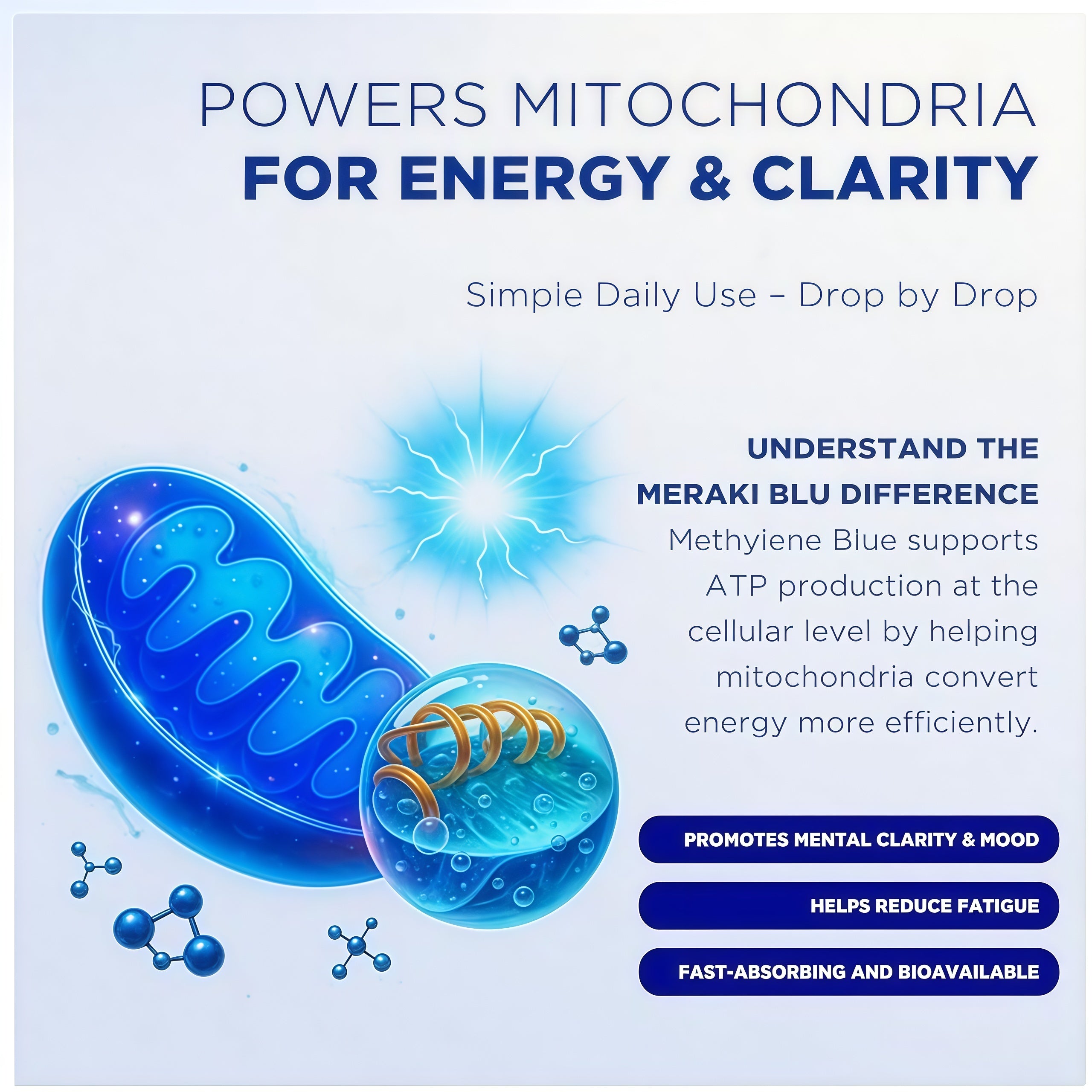 Supports mitochondrial repair, boosts energy production, enhances mood and clarity, and helps overall cellular function with USP-grade methylene blue backed by scientific research.